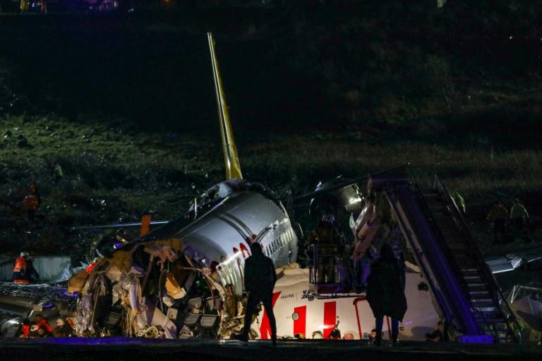 Le fuselage de l’appareil, un Boeing 737 de la compagnie privée turque Pegasus, s’est brisé en trois et a pris feu après que l’avion est sorti de la piste à l’aéroport international Sabiha Gökçen, situé sur la rive asiatique d’Istanbul, selon les images diffusées par la chaîne CNN-Türk.