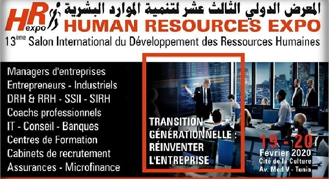 Tunisie-Tribune (Salon international de développement des ressources humaines) – La 13ème édition du Salon international de développement des ressources humaines (HR expo), sera organisée, les 19 et 20 février 2020, à la Cité de la Culture, à Tunis, sur le thème « la transition inter- générations, sur le thème « la transition inter- générations : réinventer l’entreprise« .