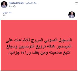 Le président de la Commission Parlementaire de la Santé et des Affaires Sociales, Khaled Krichi, a formellement démenti les rumeurs diffusées par la dame. Dans un statut publié sur sa page Facebook, il a assuré que l’auteure de l’enregistrement sonore sera poursuivie en justice, au même titre que les « personnes qui sont derrière elle ».