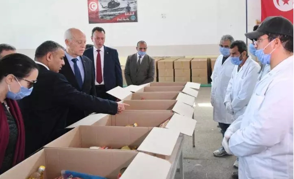 Tunisie-Tribune (Kais Saied distribuant de l’aide dans les quartiers) – La page officielle de la présidence de la République a publié ce dimanche 5 avril 2020,sur sa page officielle des photos de la caserne de sécurité présidentielle de Gammarth, où un certain nombre de dons ont été collectés sous la supervision du président kais saied