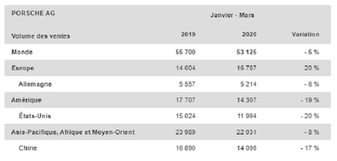 « Le volume de livraisons aux clients est affecté par la crise du coronavirus. Mais aujourd’hui, notre priorité, c’est d’être aux côtés de nos partenaires commerciaux partout dans le monde, afin de pouvoir réagir rapidement et de manière appropriée pour faire face aux évolutions à venir », a déclaré Detlev von Platen, membre du Directoire de Porsche AG, en charge des ventes et du marketing. « Au terme de ce trimestre où il nous a fallu relever des défis de taille, nous nous préparons désormais activement à redémarrer la production. Notre priorité absolue, c’est la santé de nos salariés, celle des collaborateurs travaillant au sein de notre réseau de distribution et, bien sûr, celle de nos clients. Nous sommes confiants en l’avenir, notamment raison de la nette reprise sur le marché chinois ; pratiquement tous les Centres Porsche implantés en Chine ont rouvert leurs portes. »
