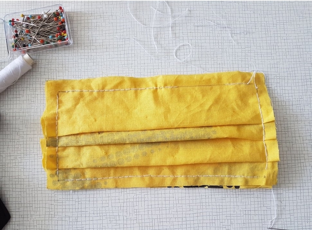 7. Dernières coutures : refermez le trou qui vous a servi à retourner le masque puis cousez sur les deux petits côtés à environ 1 cm du bord.
