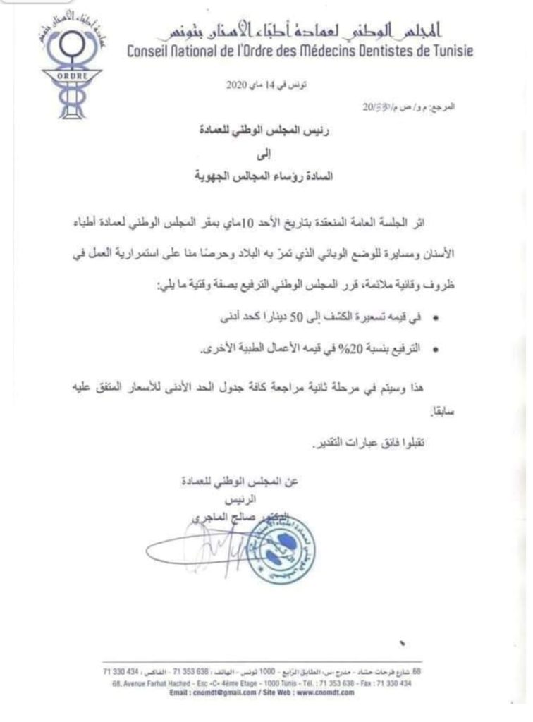 Cette première étape de hausse temporaire des tarifs, selon le Conseil des médecins dentistes, sera suivie par une deuxième phase portant sur la révision de tableau des tarifs minimum convenus auparavant.