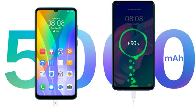 Le HUAWEI Y6p est livré avec une grande batterie de 5000 mAh qui selon les données testées par Huawei peut prendre en charge jusqu’à 16 heures de lecture vidéo en ligne, 32 heures de lecture vidéo, 20 heures de navigation Internet sur 4G ou 36 heures d’appels téléphoniques. Ce qui non seulement offre une longue durée de vie de la batterie, mais prend également en charge la charge inverse de 6 W via un câble OTG – il peut également charger d’autres appareils avec une puissance de sortie jusqu’à 5 V / 1,2 A.