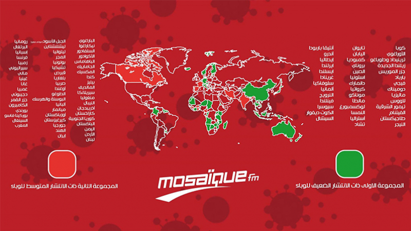 Tunisie-Tribune (Coronavirus) – La Belgique, l’Espagne, la Suisse et la Chine ont été retirées de la liste verte et incluses dans la liste orange selon la nouvelle mise à jour de la classification des pays basée sur le niveau de risque épidémiologique du Coronavirus, publiée hier, mercredi 29 juillet 2020, par le ministère de la Santé.