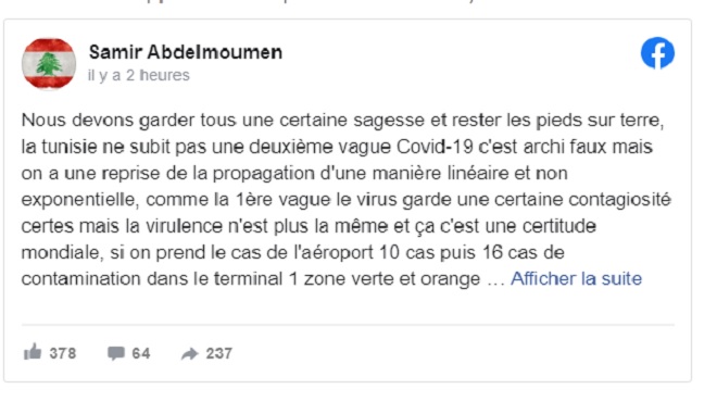 Tunisie-Tribune (Aéroport Tunis-Carthage) – Docteur Samir Abdelmoumen, membre de la commission scientifique de lutte contre le coronavirus a précisé dans un post sur Facebook que les analyses de dépistage du coronavirus de 2500 employés de l’aéroport Tunis-Carthage effectuées entre mardi et samedi étaient toutes négatives.