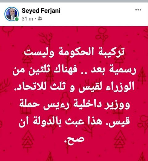 C’est, entre autres, ce qui filtre d’un post publié par le leader au sein du parti, Saïed Ferjani.