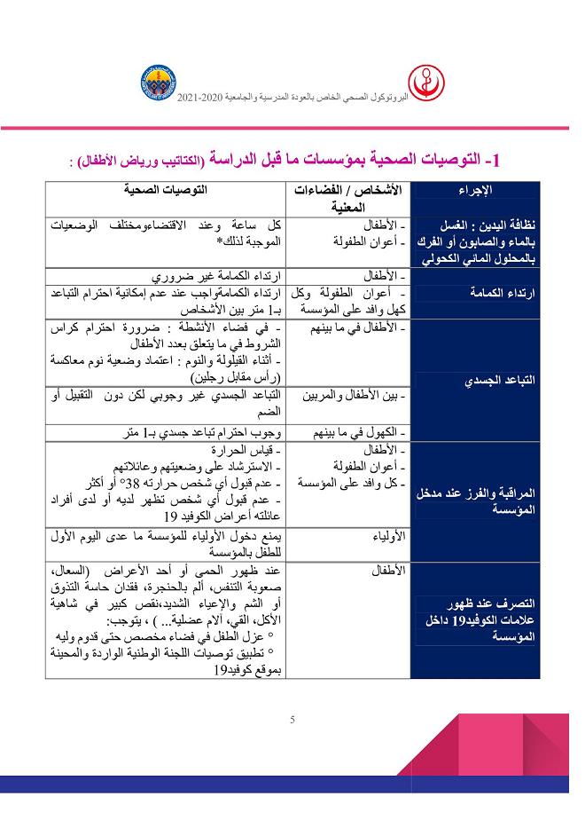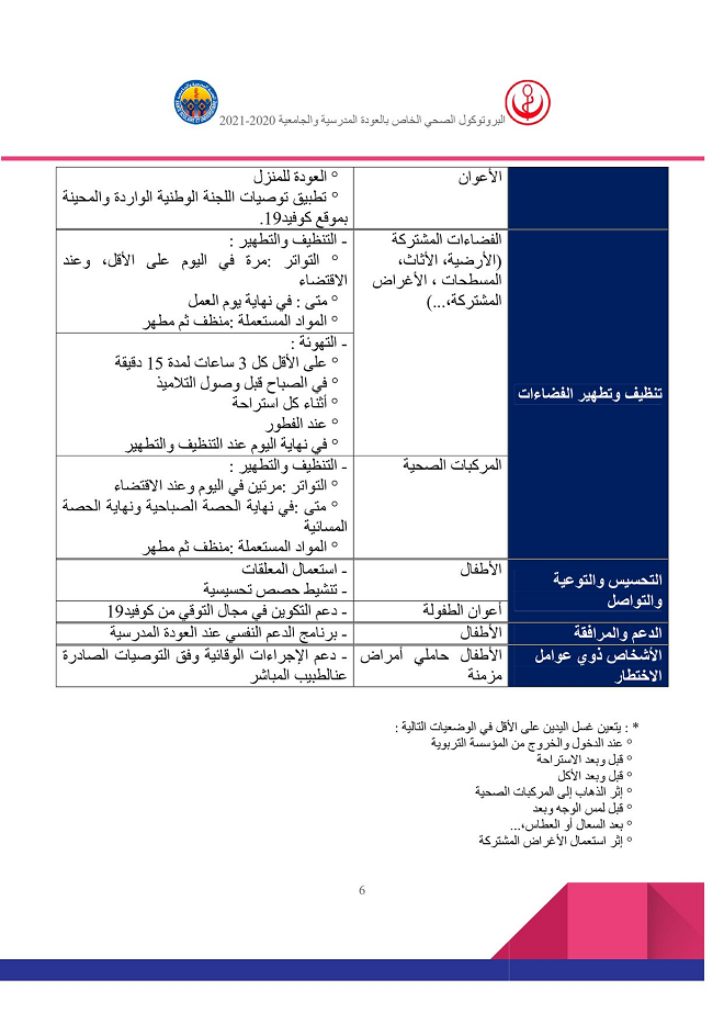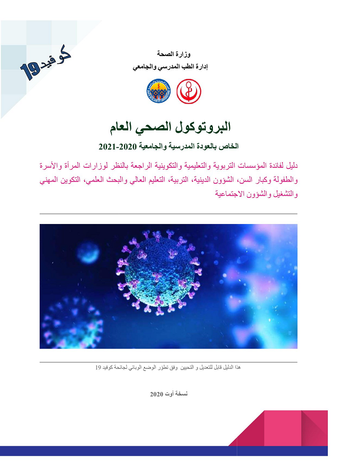 Tunisie-Tribune (Protocole sanitaire) – le ministère de la Santé a publié , aujourd’hui jeudi 17 août 2020, sur sa page facebook la Protocole sanitaire pour la rentrée scolaire et universitaire 2020-2021 :