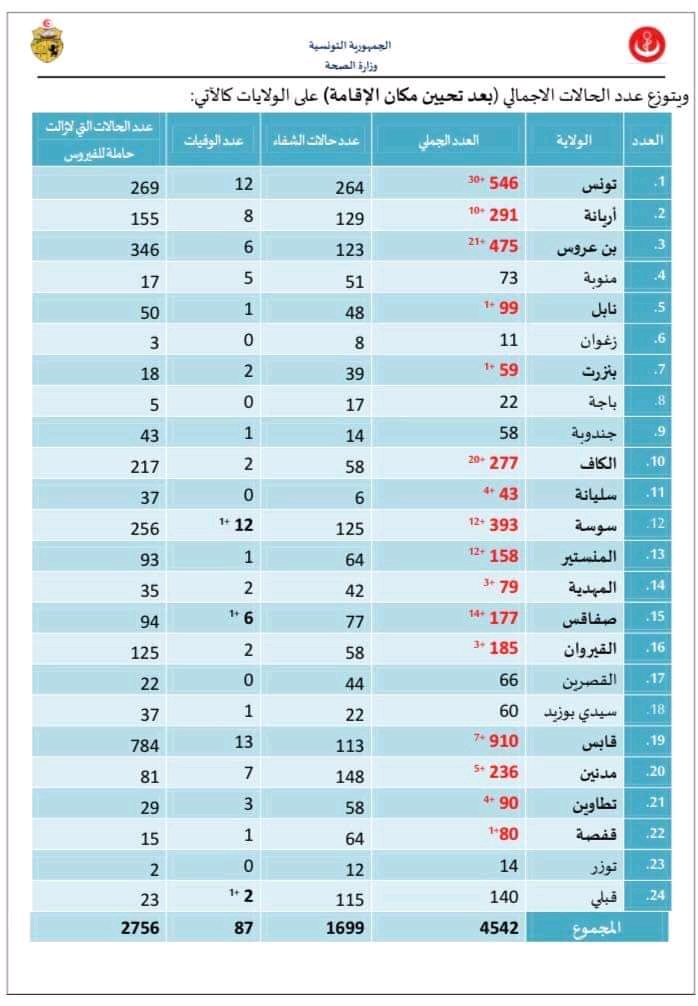 Les régions qui ont enregistré le plus grand nombre de contaminations locales sont Tunis (30), Ben Arous (21) et Le Kef (20).