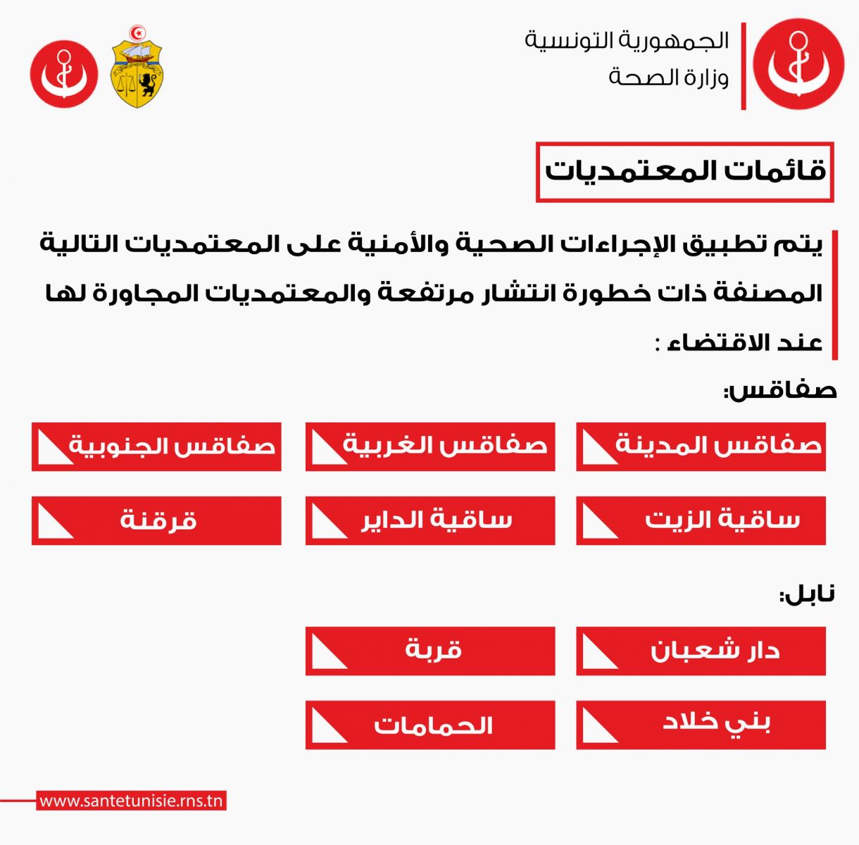 La liste concerne aussi Dar Chaabane, Korba, Béni Khalled et Hammamet.
