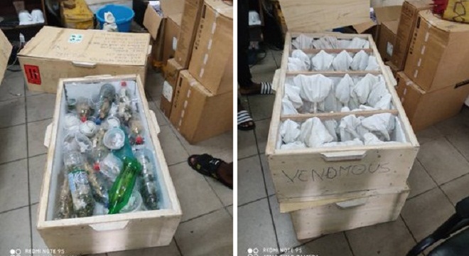 Tunisie-Tribune (Air France) – Une cargaison de 80 cobras et vipères vivants a été interceptée au Cameroun avant d’être embarquée dans la soute d’un avion de la compagnie aérienne Air France à destination de Paris.