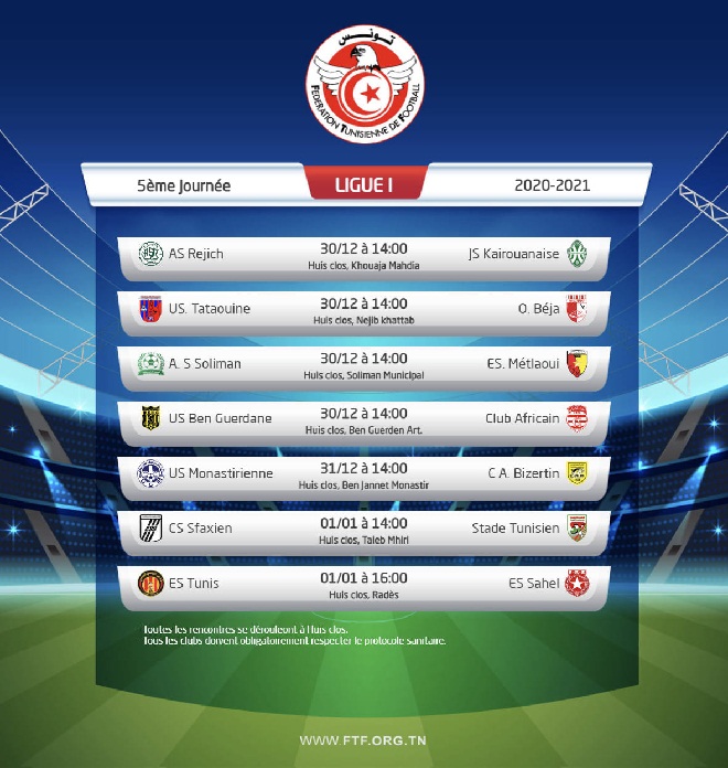 Tunisie-Tribune (matchs de la sixième journée du championnat de la ligue 1) – Les matchs de la cinquième journée du championnat de la ligue 1 ont été désigné :