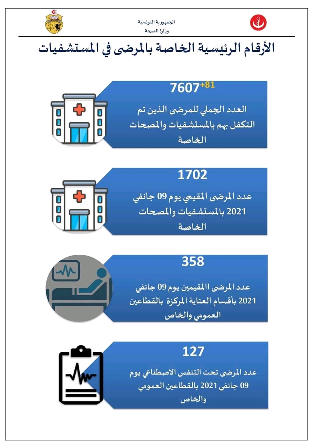 Tunisie-Tribune (Bilan du Coronavirus en Tunisie,) – Le ministère de la santé a annoncé dans un communiqué, rendu public ce dimanche 10 janvier 2021, que 1762 nouveaux cas de coronavirus ont été enregistrés à l’issue des 6143 tests de dépistage effectués le 9 janvier 2021.