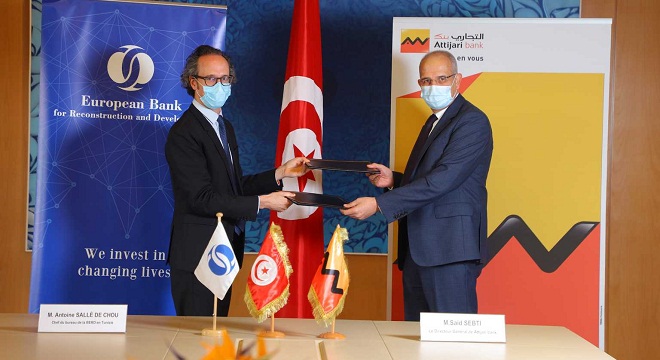 Ces accords, signés par M. Antoine Sallé de Chou, Chef du bureau de la BERD en Tunisie et M. Saïd Sebti, Directeur Général d’Attijari bank Tunisie, visent à faciliter l’accès au financement aux petites et moyennes entreprises tunisiennes.