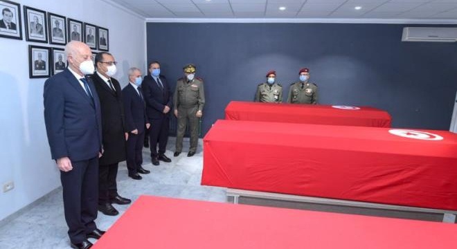 Dans un éloge funèbre, le président Kais Saïed a salué « le courage et la bravoure de ces héros de la Tunisie et leur dévouement à servir la patrie, à protéger la sécurité des Tunisiens et à défendre le pays contre les ennemis qui le guettent« .