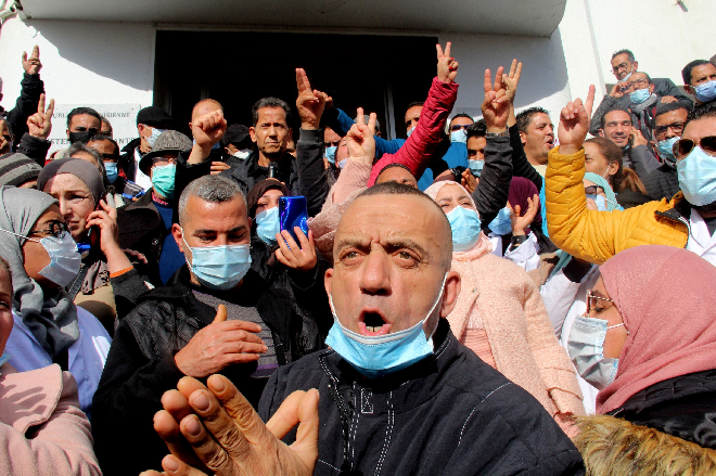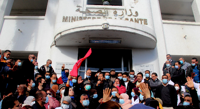Tunisie-Tribune (protestation du personnel de la Santé) – Le personnel de la santé observe, ce lundi 8 février 2020, une marche de protestation devant le siège du ministère appelant au retrait de l’article 2 de la loi portant sur le statut général des personnels de l’Etat.