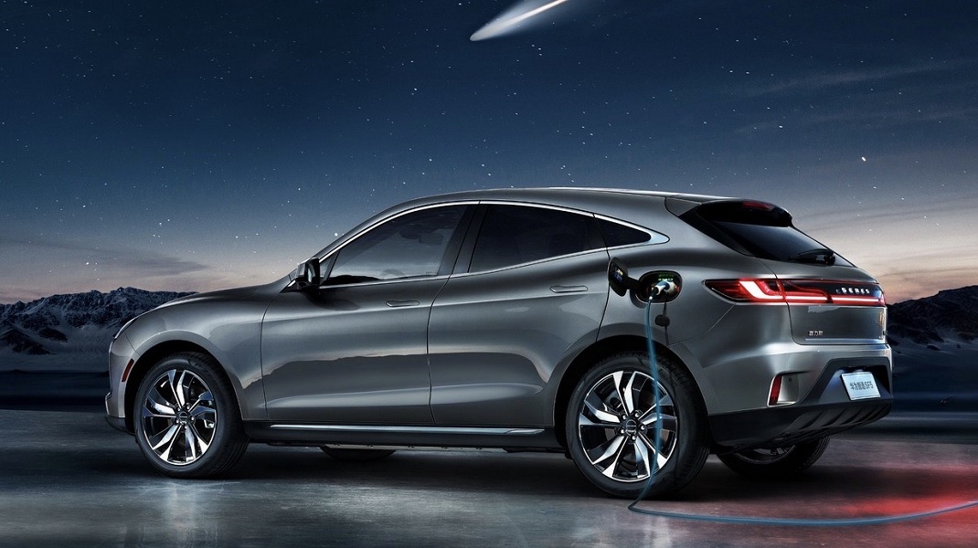 Un coupé SUV électrique à longue portée amélioré par les technologies Huawei entre dans les magasins phares de huawei à travers la Chine
