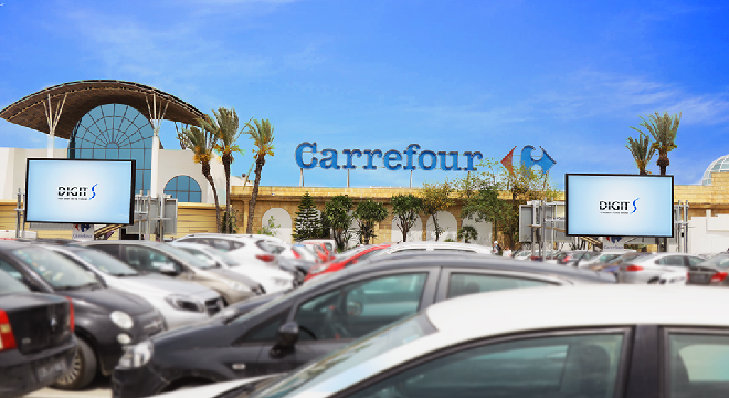 Tunisie-Tribune (parking équipé d’écrans LED) – Des écrans LED grand format de dernière génération viennent sublimer le parking du centre commercial Carrefour La Marsa, installés et exploités par la régie digitale Digit-S, leader en solutions digitales pour affichage dynamique.