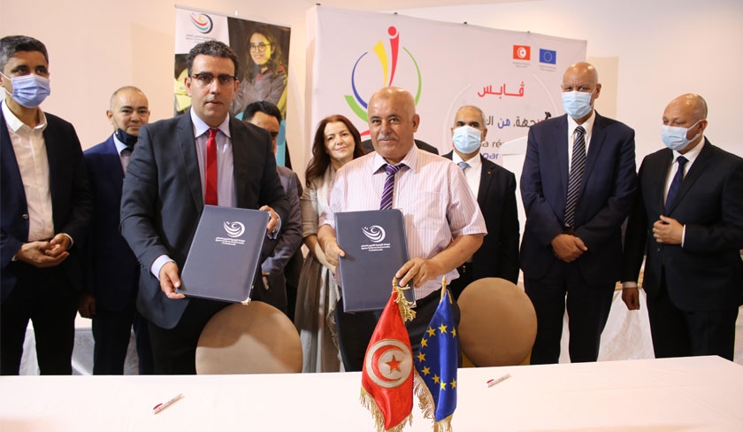 La cérémonie de signature du contrat d’attribution de financement pour ce projet représente l’aboutissement du parcours participatif entre tous les acteurs du processus participatif de toutes les parties prenantes dans le domaine du dévelop- pement régional et de l’animation du marché du travail, et marque le lancement d’un nouveau modèle de gouvernance de la formation professionnelle en adoptant les principes de la décentralisation participative. Elle a été organisée le ven- dredi 4 juin 2021, sous la tutelle de la ministre de la Jeunesse, des Sports et de l’Insertion Professionnelle, et en présence du Gouverneur de Gabès, de Directeur général de la l’Agence Tunisienne de Formation Professionnelle, du Responsable national du Programme Irada, et des représentants des organisations professionnelles et industrielles, des administrations et des intérêts régionaux.