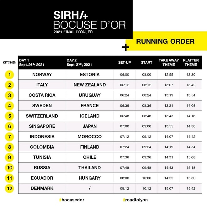 Le Bocuse d’Or sera remis le 26 et 27 septembre 2021 dans le cadre de Salon International de la Restauration et de l’Hôtellerie et de l’Alimentation SIRHA, un salon dédié à la gastronomie et à la restauration à Lyon.