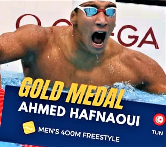 C’est que notre prodigieux jeune nageur Ahmed Ayoub Hafnaoui (18 ans), engagé dans le couloir 8, le plus difficile à coté des géants de la spécialité, a réussi à damer le pion a tous les favoris de l’épreuve du 400m (nage libre), sur une distance qu’il a dominée de bout en bout, terminant, à la surprise générale, la course en tête, en offrant a la Tunisie sa première médaille d’or à Tokyo. Une médaille qui hisse notre pays au huitième rang sur 206 pays.