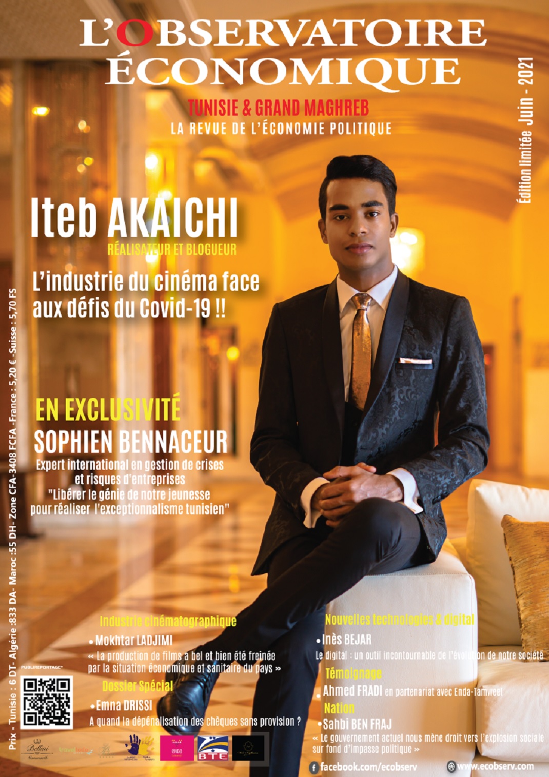 À la fois jeune réalisateur et blogueur Iteb AKAICHI a été choisi parmi tant de jeunes pour être à l’honneur en faisant la couverture du Magazine L’ Observatoire Économique, distribué en Tunisie, au Maghreb Arabe, en Afrique et en Europe. AKAICHI a dévoilé exclusivement au magazine son grand retour sur la scène de la réalisation avec un nouveau film très prometteur plein d’actions, d’aventures et de frissons. Un film destiné aux jeunes en quête de sensations fortes et de chair de poule, un film paranormal qui allie le suspens et la fiction.