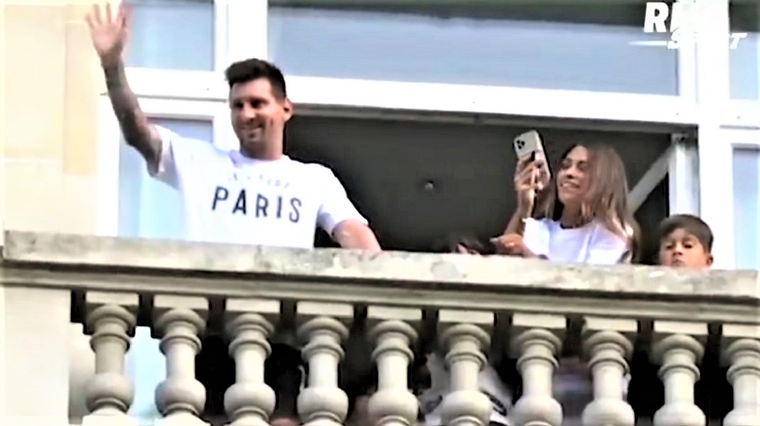 ? Du balcon de sa chambre au Royal Monceau, Lionel Messi a salué les supporters parisiens présents en bas. pic.twitter.com/49DDhr15We
