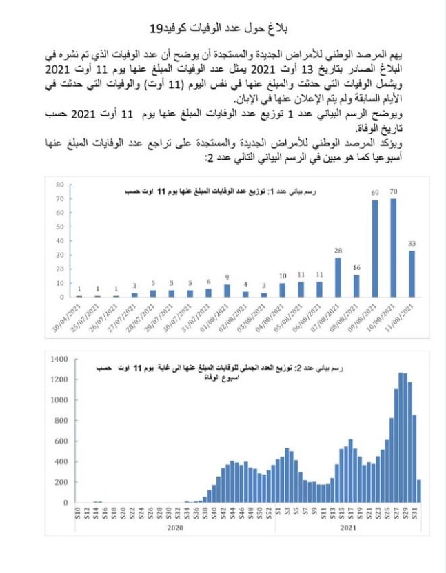 Il est à noter que le département de la Santé avait indiqué, ce matin, que 290 personnes sont décédées à cause de la Covid-19, dont 33 le 11 août courant.