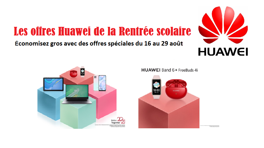 Tunisie Tribune (Les offres Huawei de la rentrée scolaire) – Finis les vacances, retour aux bancs de l’apprentissage. En cette occasion, Huawei a pensé à sa clientèle tout en mettant à leur disposition divers produits emblématiques en promotion soit des smartphones, tablettes, PC, FreeBuds ou bien la fameuse band 6. Commencez votre année autrement avec les produits exceptionnels de Huawei. Equipez-vous de matériel scolaire avec des réductions intéressantes et ce du 16 jusqu’au 29 août 2021.