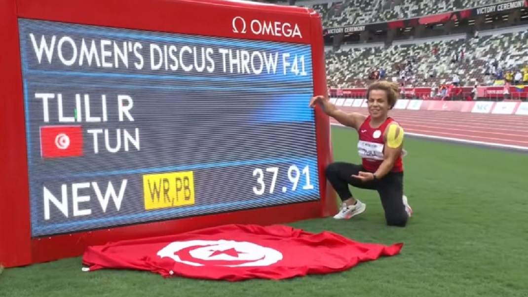 Tunisie Tribune (Une deuxième médaille d’or pour Raoua Tlili) – la tunisienne Raoua Tlili vient de remporter sa deuxième médaille d’or, au lancer du disque (F41), avec un jet de 37.91 mètres, aux Jeux paralympiques de Tokyo, ce mercredi 1er septembre 2021.