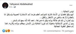 « Il a été informé que cela est en relation avec son père », écrit Abdelwahed Yahyaoui, dans un poste paru dimanche soir sur sa page officielle Facebook.