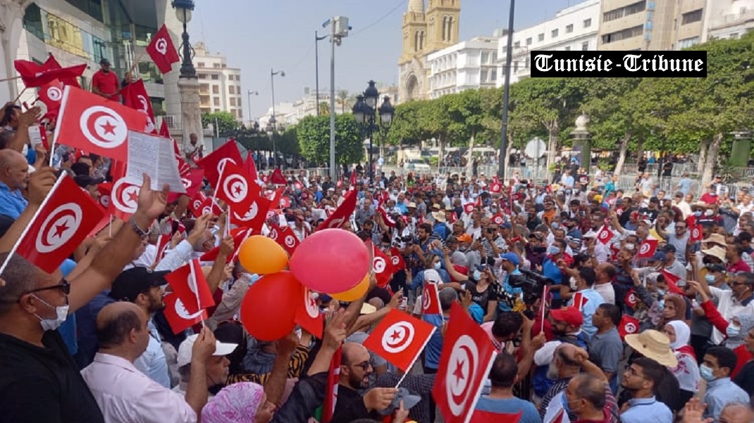 Tunisie Tribune (dénoncer et rejeter les décisions de Kais Saïed) – de nombreux citoyens ont organisé deux rassemblements devant le Théâtre municipal de Tunis, les uns pour confirmer leurs soutien à Kais Saied, les autres pour protester contre les décisions prises par le président de la République, Kais Saïed, le 25 juillet ainsi que le décret 117 du 22 septembre.