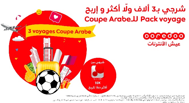 3 heureux gagnants seront tirés au sort le 15 novembre 2021. Chaque gagnant remportera un Pack Voyage pour la coupe Arabe de la FIFA. Le Pack-Voyage inclut le billet d’avion, le séjour, les transferts à l’hôtel et un Pass pour 2 matchs de l’équipe nationale Tunisienne.