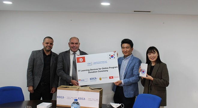 Tunisie Tribune (KOICA) – Une cérémonie de livraison de 19 tablettes au profit du Ministère de l’Enseignement Supérieur et de la Recherche Scientifique a eu lieu jeudi, 18 novembre 2021 au siège du Ministère. Ce don entre dans le cadre de la formation financée par la KOICA intitulée «SCEINCE DIPLOMACY AND SCIENCE OF SCIENCE AND INNOVATION POLICY » qui a eu lieu du 01au 14 septembre 2021 au profit de 19 fonctionnaires d’état tunisiens.