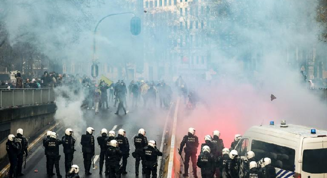 Dans cet affrontement, plusieurs manifestants portaient des cagoules et brandissaient des drapeaux nationalistes flamands. Le face-à-face avec les forces anti-émeutes s’est déroulé près du quartier européen et du gouvernement à Bruxelles.