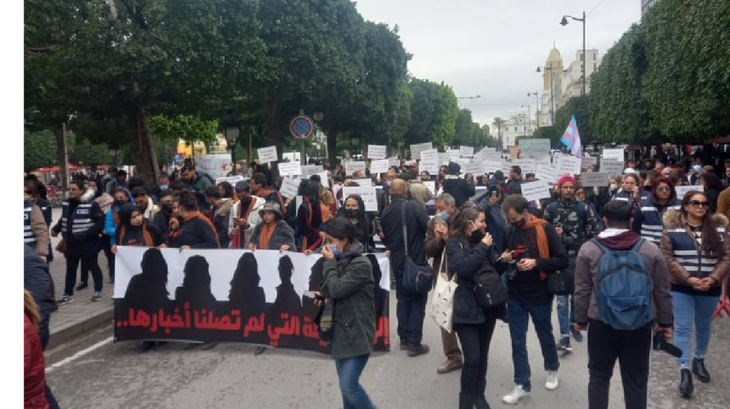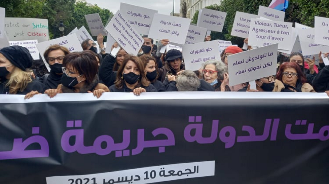 Tunisie Tribune (violence à l’égard des femmes)- Dans le cadre des 16 Jours d’activisme de lutte contre la violence basée sur le genre, l’Association tunisienne des femmes démocrates (ATFD) a organisé aujourd’hui vendredi une marche nationale contre les féminicides et la violence à l’égard des femmes et pour lutter contre l’impunité, placée sous le slogan : «Le silence de l’État tue les femme».