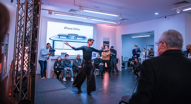 Issu d’une étude approfondie des techniques de cinéma et des effets du procédé de changement de mise au point, le mode Cinématique sur le nouvel iPhone 13 permet de filmer des personnes, des animaux de compagnie ou des objets avec un bel effet de profondeur de champ grâce au changement de mise au point automatique, de façon à créer des séquences comme au cinéma, sans être un réalisateur professionnel permettant, aujourd’hui aux jeunes talents et créateurs tunisiens de travailler avec cet outil comme un matériel de filming vidéo et photo hautement professionnel. C’est d’ailleurs l’avis de Rabi Ben Brahim, l’influenceur et vidéaste connu sur Instagram sous le nom de ‘The Dreamer’, qui a relaté son expérience avec le zoom 77 mm de l’iPhone 13,lui permettant d’avoir une image de qualité. Les invités de l’évènement ont eu droit à une performance artistique Live de l’artiste Pierre Lamoureux, ayant collaboré avec le photographe MoezShaiek pour immortaliser les photos de ses performances artistiques, en pleine nature et patrimoine tunisien grâce à l’iPhone 13.