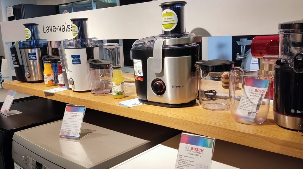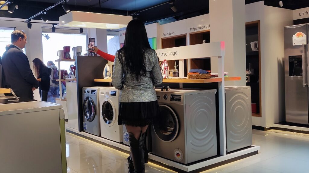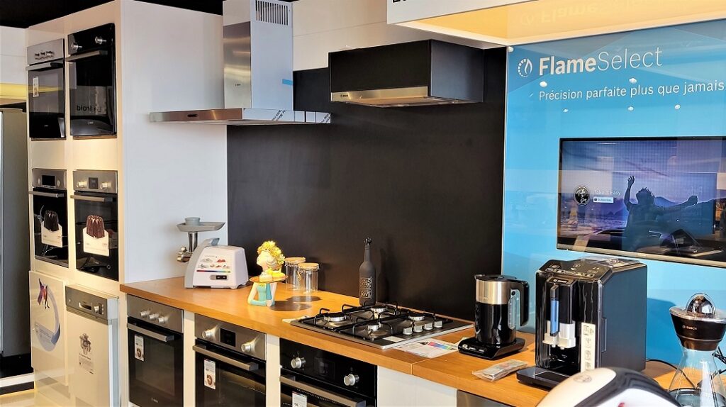 Ce showroom présente une gamme complète d’appareils électroménagers du fabricant allemand et la variété des modèles d’électroménagers exposés est impressionnante.