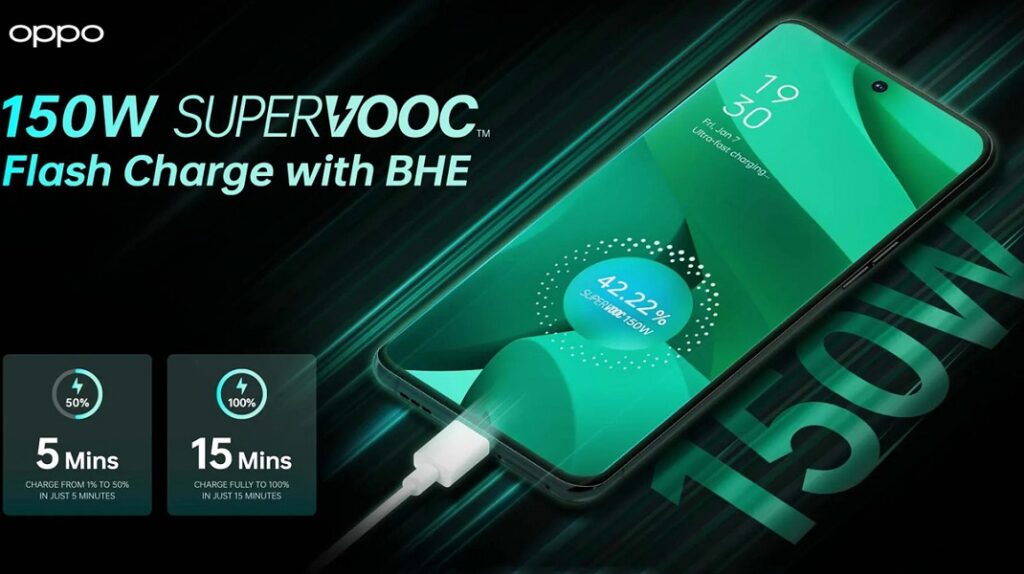 - La charge rapide SUPERVOOCTM 150W d’OPPO double la durée de vie de la batterie, tandis que SUPERVOOCTM 240W repousse les limites de la vitesse de charge.