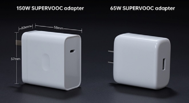 En outre, l’adaptateur SUPERVOOC 150W avec BHE exploite le nitrure de gallium (GaN) pour réduire la taille de l’adaptateur à presque la même valeur que celle du SUPERVOOC 65W de la génération précédente, mesurant 58 x 57 x 30mm, et pesant environ 172g.