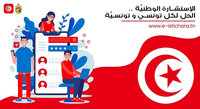 Présentant les résultats préliminaires de la consultation, lors d‘une rencontre avec le président de la république, en présence de la cheffe du gouvernement, Nejla Bouden, le ministre a indiqué qu’au chapitre politique est des élections et autour de l’avenir que les Tunisiens préfèrent pour leur pays, les participants ont répondu dans des proportions de 70,4 % pour l’Etat de droit, 31,2 % pour travail, liberté et dignité nationale, 29,5 % pour la démocratie, la sécurité et la souveraineté, et 28,3 % pour un développement intégral et solidarité.