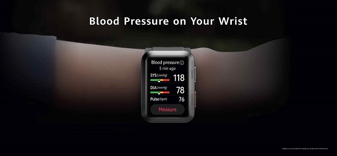 Le HUAWEI WATCH D est le premier dispositif de surveillance de la pression artérielle au poignet[12] permettant une mesure précise de la pression artérielle à tout moment et en tout lieu pour les patients hypertendus.