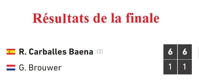 Le vainqueur du tournoi « Tunis Open by KIA » est l’espagnol Roberto Carballes Baena 102e mondial (en bleu)… qui a battu G Brouwer par le score de (6/1, 6/1). Le Trophée lui a été remise par Riadh Annabi.