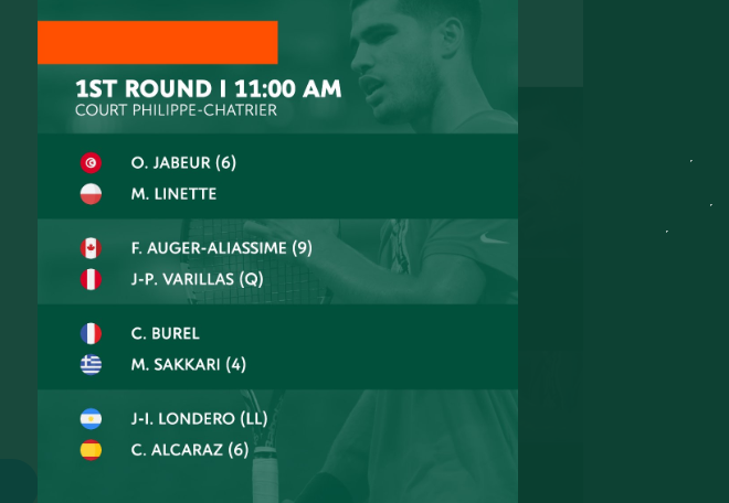 Tunisie Tribune (Roland-Garros) – Le tournoi de Roland-Garros débute dimanche. Pour cette première journée, Alexander Zverev, Carlos Alcaraz, Ons Jabeur et Garbine Muguruza font notamment leur entrée en lice.