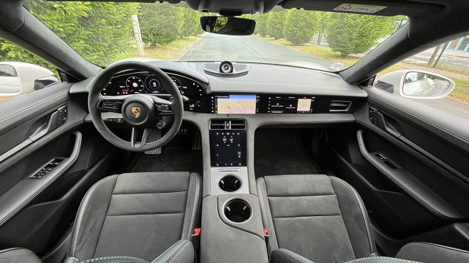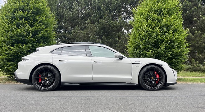 Révélée en fin d’année 2021, la Sport Turismo est, pour parler un peu crûment, la déclinaison break du Porsche Taycan. La version GTS à notre disposition bénéficie d’un package châssis, d’un niveau d’équipement et d’une puissance moteur spécifiques. Ses performances sont à peine en dessous de la Turbo (500 kW ou 680 ch) dont l’appellation est quelque peu en décalage du fait de son groupe motopropulseur 100 % électrique.