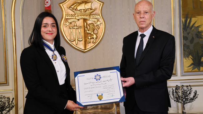 A cette occasion, Kaïs Saïed a décerné l’Ordre national du Mérite de la République tunisienne à Ons Jabeur, en reconnaissance de sa réalisation sportive remarquable et de sa contribution à hisser le drapeau national dans les échéances sportives internationales.