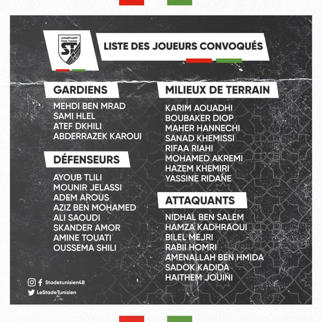 Le staff technique conduit par Skander Kasri a fait appel à cette occasion aux joueurs suivants :