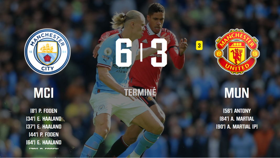 Manchester City s’impose face à Manchester United ce dimanche 2 octobre dans un derby très prolifique (6-3). Erling Haaland a encore inscrit un triplé.