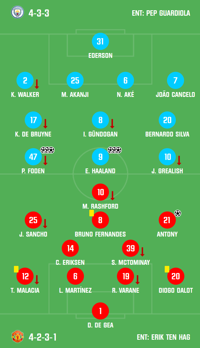 Phil Foden a aussi réalisé cet exploit alors qu’Anthony Martial, rentré en deuxième période, a inscrit un doublé.