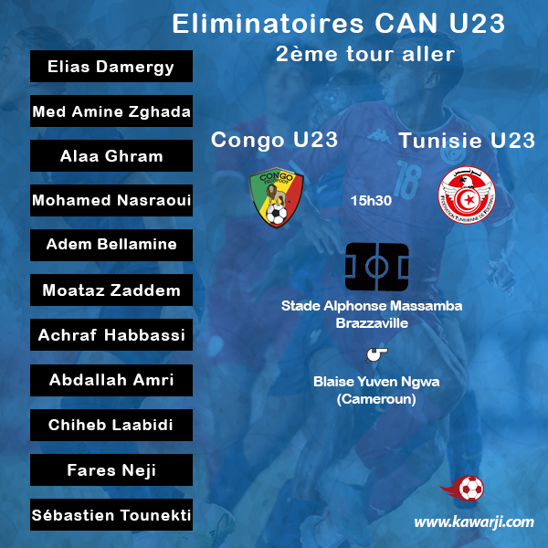 CAN U23-Eliminatoires : Formation rentrante de la Tunisie U23 face au Congo